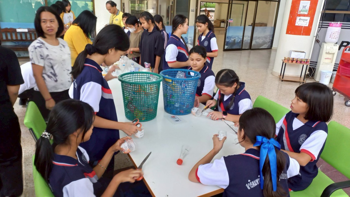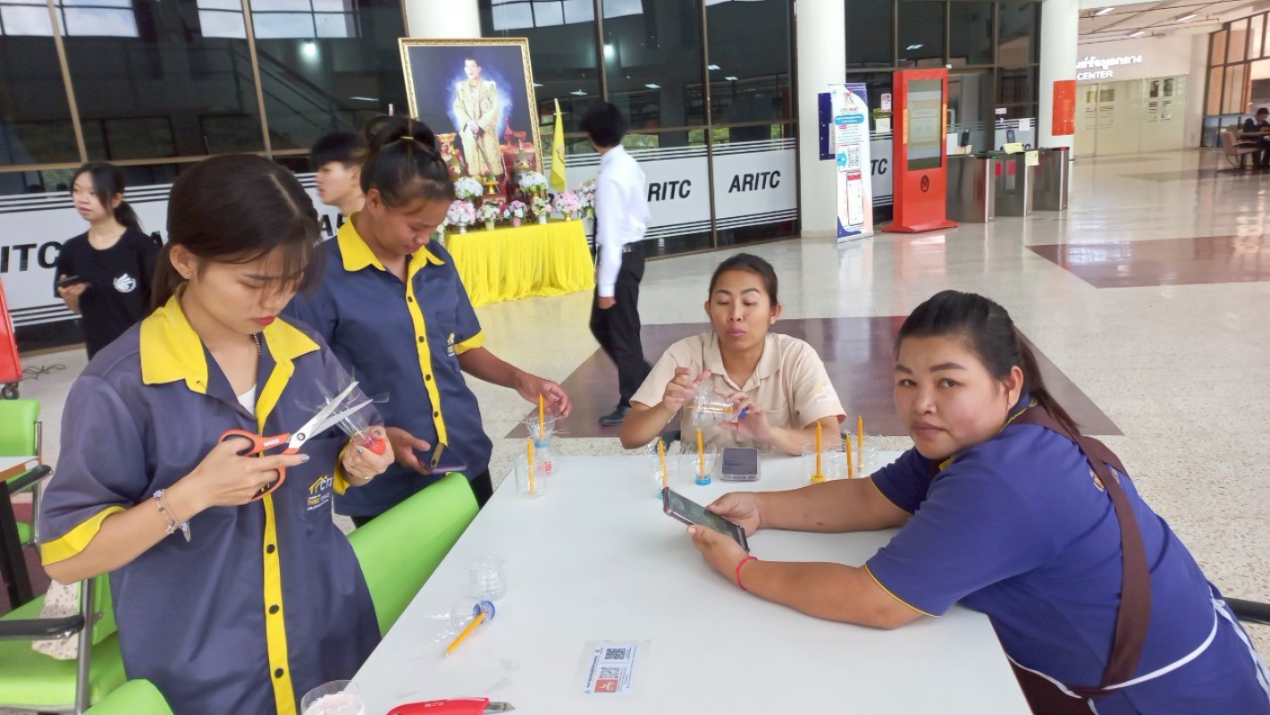 กิจกรรม "ประทีปแห่งศรัทธา แสงธรรมจากขวด" เพื่อลดขยะ เพิ่มบุญ สร้างสรรค์เชิงเทียนพลาสติก ----------- 7 ก.ค. 2568 สำนักวิทยบริการและเทคโนโลยีสารสนเทศ มหาวิทยาลัยราชภัฏเชียงราย ได้จัดกิจกรรมดีๆ ที่ชวนทุกคนมาร่วมกิจกรรม "ประทีปแห่งศรัทธา แสงธรรมจากขวด" บริเวณลานกิจกรรมชั้น 1 อาคารยุพราชวิทยมงคล ซึ่งกิจกรรมนี้ไม่ใช่แค่ลดขยะพลาสติกที่กองเต็มโลก แต่ยังได้บุญแบบเต็มๆ จากการสร้างสรรค์ "เชิงเทียนจากขวดพลาสติก" เพื่อนำไปเวียนเทียนในวันอาสาฬหบูชาเพื่อถวายเป็นพุทธบูชาอีกด้วยค่ะ! ไอเดียนี้เกิดขึ้นจากคณะทำงาน หมวดที่ 2 ด้านการสื่อสาร สร้างจิตสำนึก และส่งเสริมการเรียนรู้ ในคณะกรรมการบริหารจัดการระบบมาตรฐานด้านสิ่งแวดล้อม สำนักวิทยบริการและเทคโนโลยีสารสนเทศ ในการดำเนินงงานด้านห้องสมุดสีเขียว (Green Library) และ สำนักงานสีเขียว (Green Office) ตั้งใจที่จะรวมพลังระหว่าง "การรักษ์โลก" กับ "การทำบุญ" ที่เป็นส่วนหนึ่งของวิถีชีวิตไทยมาอย่างยาวนาน การนำขวดพลาสติกใช้แล้วมาเปลี่ยนเป็นเชิงเทียนเพื่อนำไปเวียนเทียนในวันอาสฬหบูชาที่จะถึงนี้ เป็นการแสดงออกถึงความรับผิดชอบต่อสิ่งแวดล้อม และยังเป็นการสร้างกุศลด้วยการประดิษฐ์สิ่งที่สวยงามและมีคุณค่าทางจิตใจ กิจกรรมในวันนี้ มีน้อง ๆ นักศึกษา และนักเรียนจากโรงเรียนสาธิต มร.ชร. ร่วมถึงบุคลากรของสำนักวิทยบริการฯ เข้าร่วมกิจกรรมในครั้งนี้ โอกาสต่อไป คณะทำงานหมวดไหน จะทำกิจกรรมเพื่อเป็นการรณรงค์ด้านห้องสมุดสีเขียว (Green Library) และ สำนักงานสีเขียว (Green Office) อีก สามารถติดตามผ่านทางเพจสำนักวิทยบริการฯ ของเราได้เลยน๊าทุ๊กคนนนนนนน